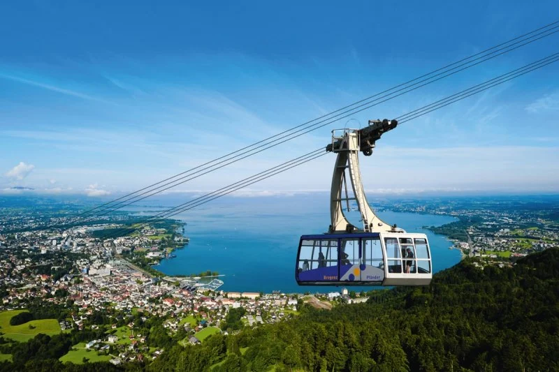 Der einzigartige Rundblick über den gesamten Bodensee und 240 Alpengipfel Österreichs, Deutschlands und der Schweiz macht den Pfänder bei Bregenz, Vorarlberg zum berühmtesten Aussichtspunkt der Region